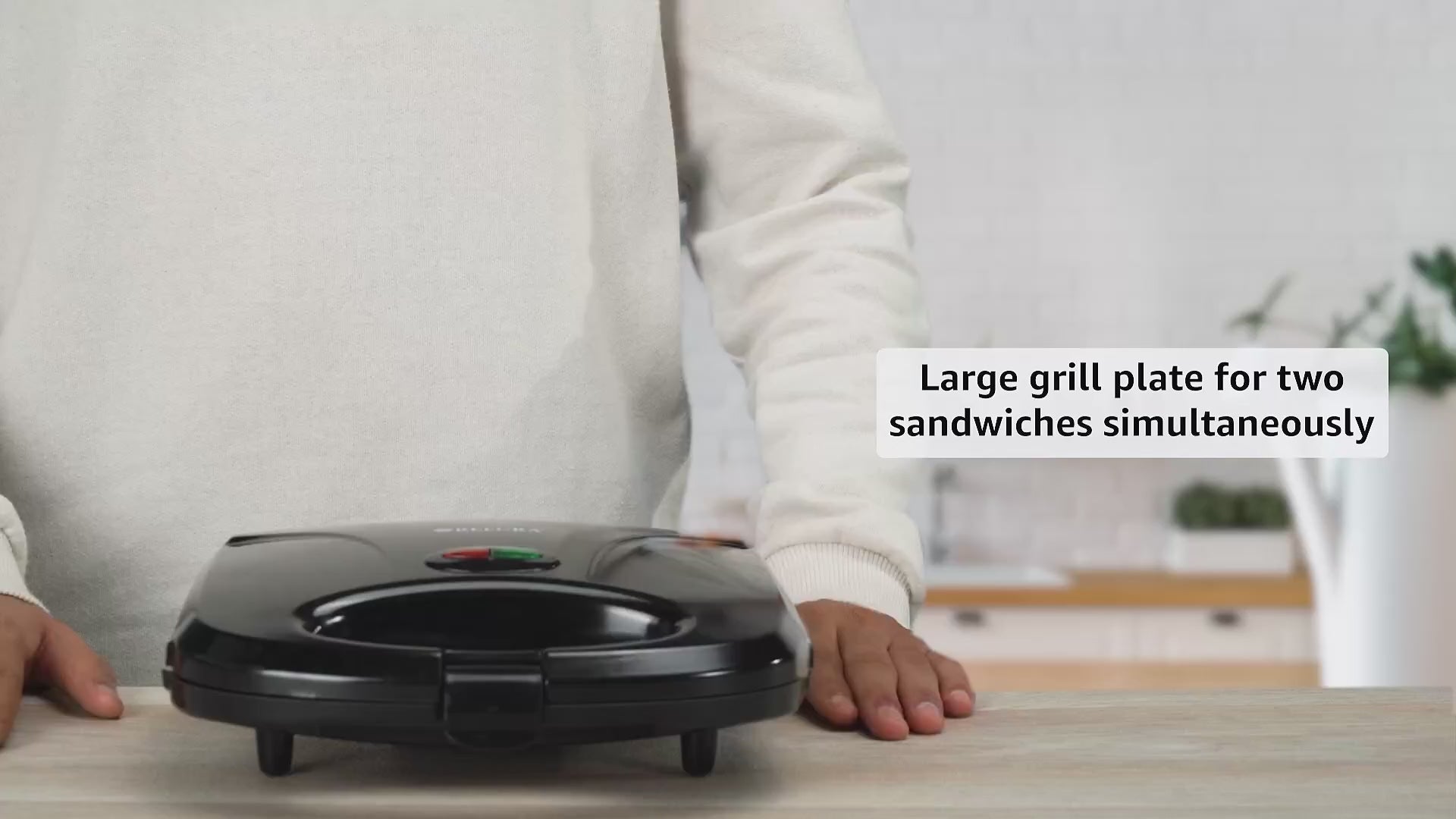 ✔ 750W power (front label) – Heats up fast and delivers evenly toasted sandwiches in minutes.